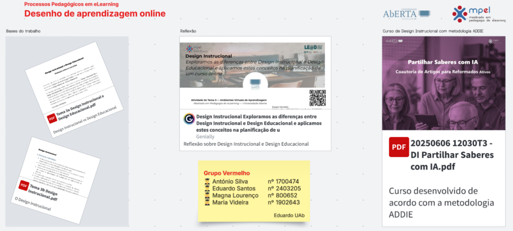 Olá a todos, O nosso grupo – Grupo Vermelho – apresenta aqui o nosso trabalho sobre o Desenho da Aprendizagem Online, elaborado no contexto da unidade curricular de Processos Pedagógicos em eLearning. A estrutura apresentada reflecte as várias etapas do processo formativo, desde a definição de objetivos pedagógicos até à avaliação final, passando pela escolha […]